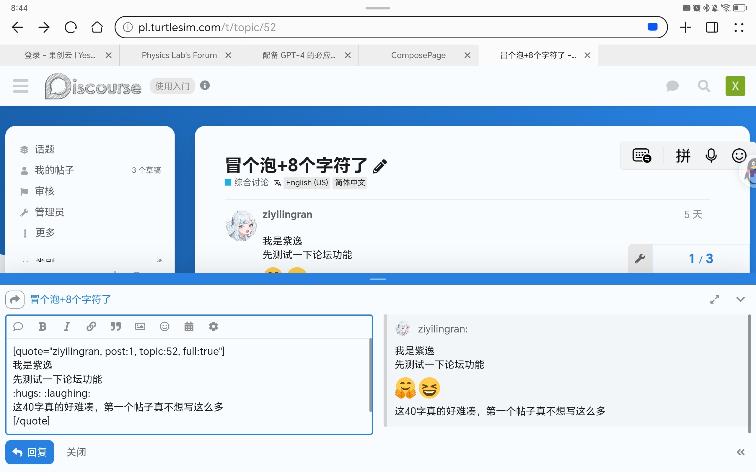 - Markdown语法:如果你想要对你的回复进行一些格式化或者美化,你可以使用Markdown语法。Markdown语法是一种简单而强大的文本编辑语言,它可以让你用一些符号来控制文本的样式和排版。详细教程请查看:https://pl.turtlesim.com/t/markdown/65