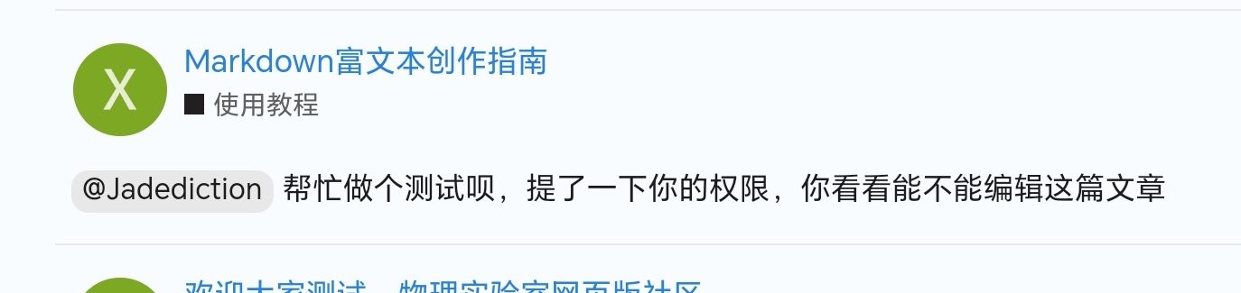 - 提及:如果你想要提及某个用户,你可以在他们的用户名前面加上一个@符号。这样,他们就会收到一个通知,并且会看到他们的用户名被高亮显示。提及可以让你更有效地与他们沟通和互动,也可以让其他人更容易找到他们。如图所示: